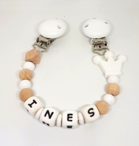Attache tétine couronne verte bois personnalisée Jean