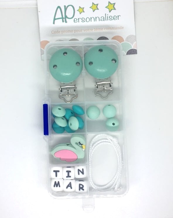 Caractéristiques kit création attache doudou vert flamant à personnaliser