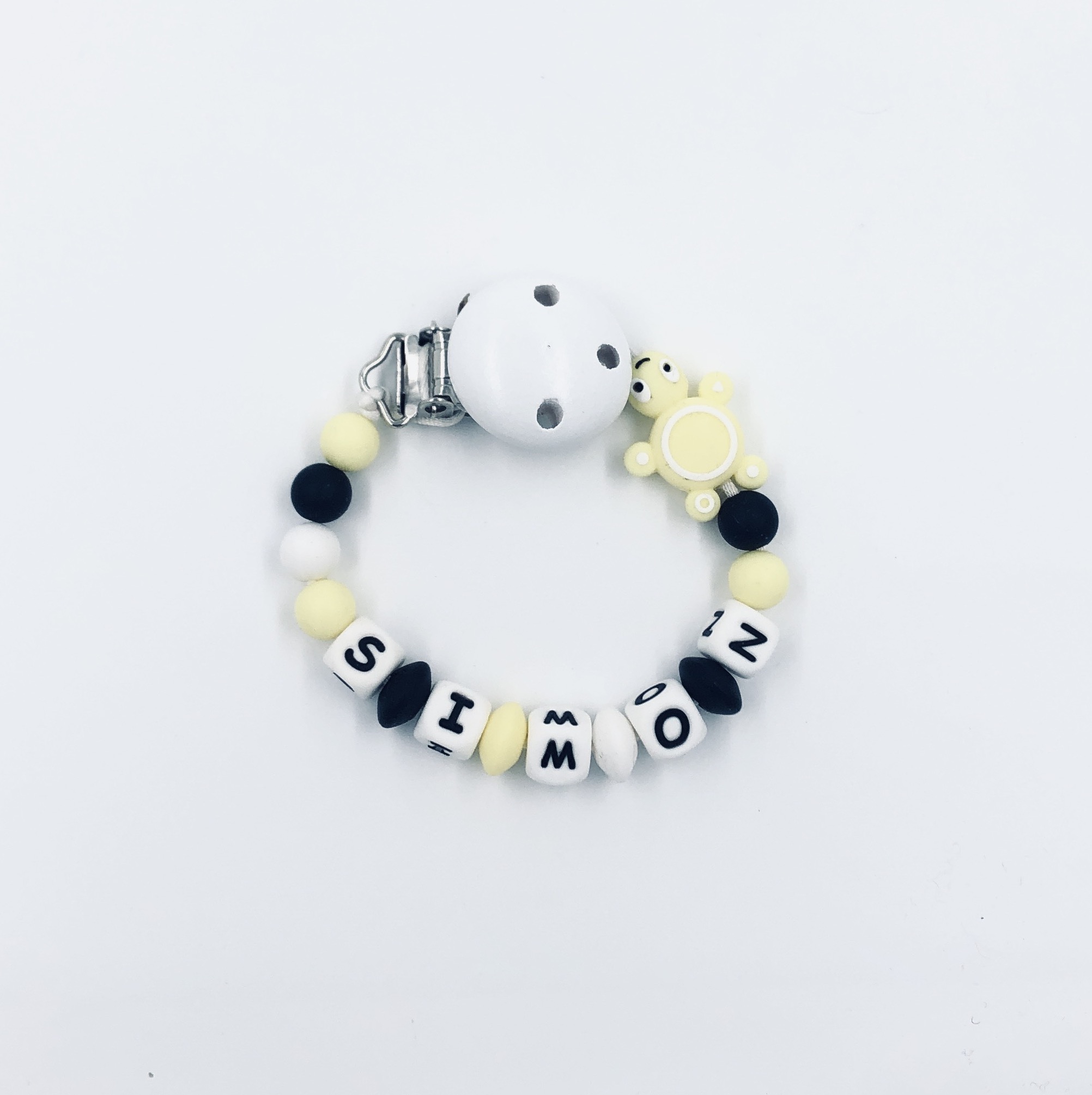 Le kit création attache sucette jaune tortue à personnaliser est un cadeau original et unique à offrir pour une naissance ou un anniversaire. N’oubliez pas d’indiquer le prénom lorsque vous passez commande d’un kit création attache tétine personnalisée.