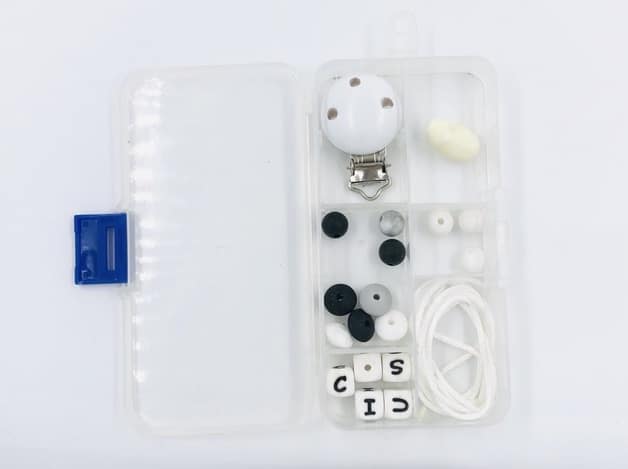 Le kit création attache sucette cochon blanc à personnaliser est composé de perles de dentition :