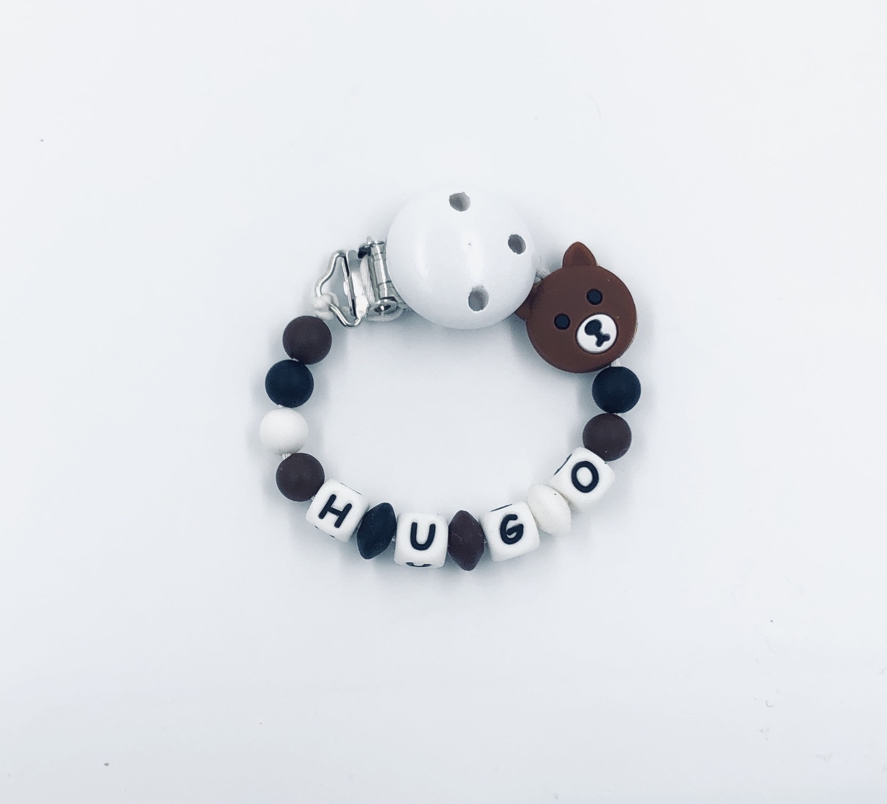 Le kit création attache tétine marron ourson à personnaliser est un cadeau original et unique à offrir pour une naissance ou un anniversaire. N’oubliez pas d’indiquer le prénom lorsque vous passez commande d’un kit création attache tétine personnalisée.