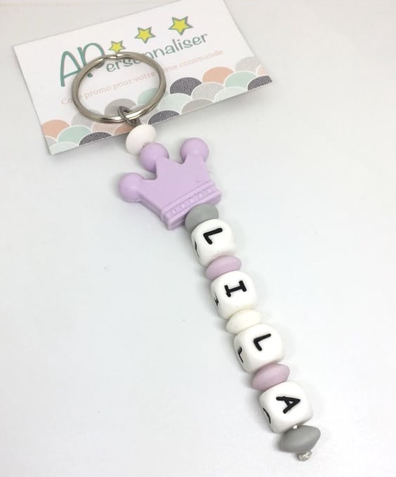 Caractéristiques Porte-clés violet clair couronne coeur à personnaliser